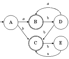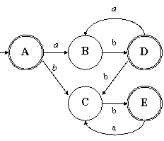 этот ДКА автомату, допускающему язык, заданный грамматикой G=({A,B,C,D,E},{a,b}, {A→ε,