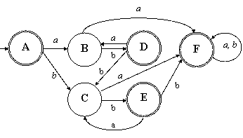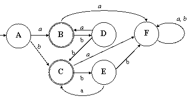 из неполных в указанном выше смысле вершин (включая и само F): Полный ДКА: